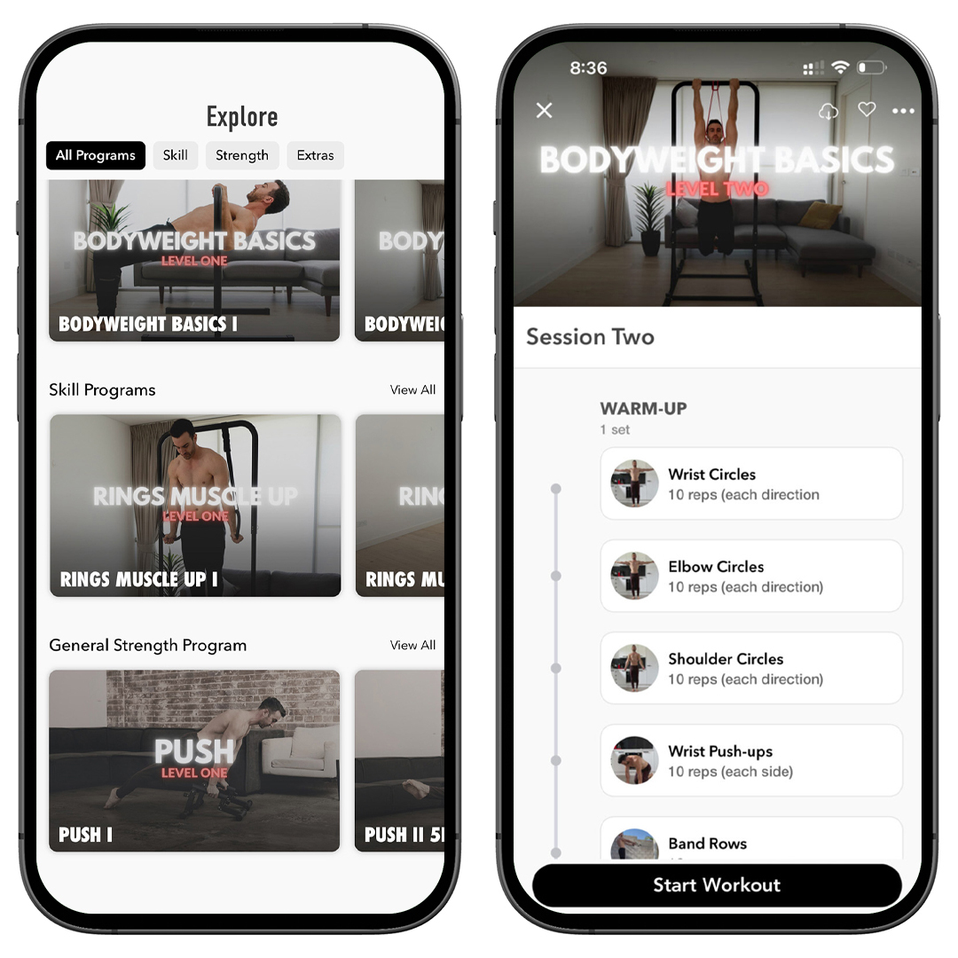 Tiered programs for each calisthenics skill. Master the muscle-up, planche, lever, and more.